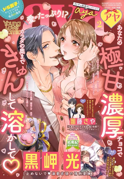 『Young Love Comic aya 2021年2月号』*表紙イラスト/あきつ鉄鋼*《巻頭カラー!!》◆ずっとそばに居たいと思うほど不安になるのは何故なの――。『止めないで・溺愛若頭の情熱愛撫 7話』(黒岬光)楽しい遊園地デートから幸せ絶頂の中にいる筈なのに胸に去来する一抹の不安がよぎるのは何故? 追い打ちを掛けるように同僚の栗田から告白されてしまう。嘉川さんにもっと激しく抱かれてないと私、あなたを見失いそうで怖いの――《巻中カラー!!》◆仕事一筋のマジメ上司に恋と快楽でスッキリ助けてあげたいんです!!『社畜上司の恋と快楽(秘)指導!? 〜私と仕事、どっちがイイですか?〜 2話』(團藤さや)新たな派遣先の部長さんは超がつくほどのマジメな仕事人間だった。堅物部長さんを休ませるためにあの手この手をためしてみたらいつの間にか親密な雰囲気になっちゃって――★豪華執筆陣★黒岬 光┴桃果コウ┴芳村かなみ志波ひより┴小石川イオリ┴佑希紀團藤さや┴伊さらこてん┴ゆうき莉子西園寺みちる┴本崎月子┴剛田ナギイチハ┴柳桜世良┴水縹ソウあきつ鉄鋼┴肉子★読者のセキララ体験大告白まんが★佑希紀