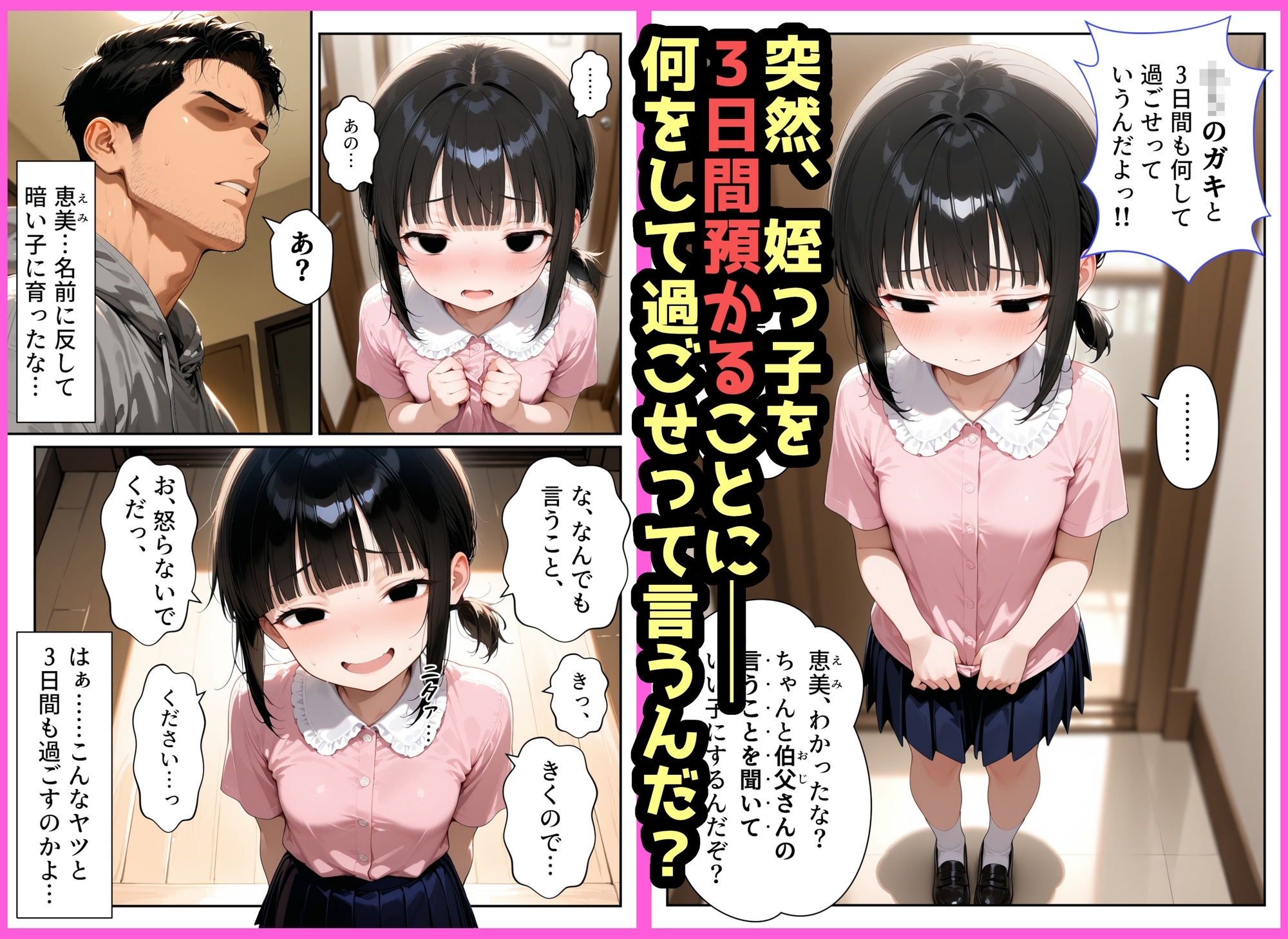 突然、姪を3日間預かることになったが…一体何をして過ごせばいいんだ?しかし、顔はブスでも体はちょうど良く育っているな。へへ、どうせ暇なんだ…俺が性教育してやるか………!