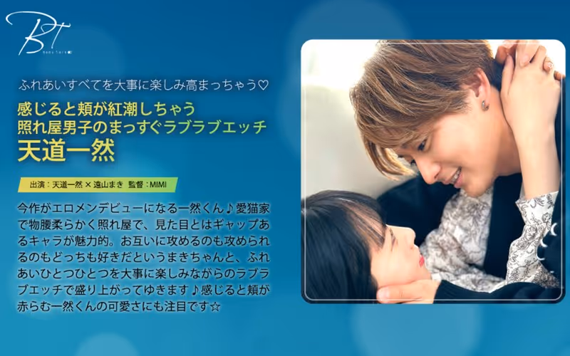 今作がエロメンデビューになる一然くん♪愛猫家で物腰柔らかく照れ屋で、見た目とのギャップが魅力的な一然くん。お互いに攻めるのも攻められるのもどっちも好きだというまきちゃんと、ふれあいひとつひとつを大事に楽しみながらのラブラブエッチで盛り上がってゆきます♪感じると頬が赤らむ一然くんの可愛さにも注目です☆