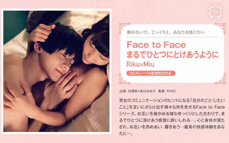 男女のコミュニケーションのヒントになる「自分のこと・したいこと」を互いにさらけ出す様々な形を見せるFace to Faceシリーズ。お互いを確かめる様なゆっくりとした交わりで、まるでひとつに溶けあう感覚に酔いしれる…。心と身体が満たされ、お互いを昂めあい、響きあう…最高の快感体験をあなたに―。