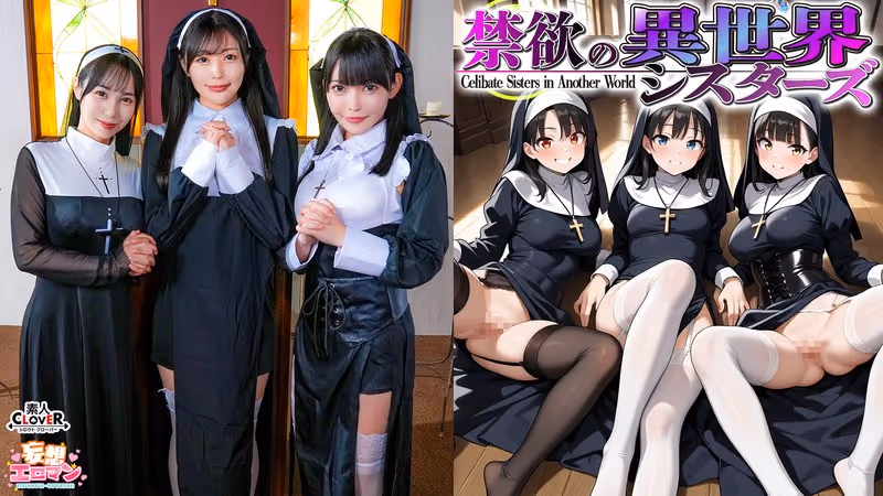 どこにでもいる青年『星野ゆうすけ』は突如部屋に出現した魔法陣によって【全ての男が息絶えた異世界の宗教国家】に召喚されてしまう。そこで「異世界召喚」という戒律を破ったことに抵抗を感じながらも国を憂う心優しき大修道院長の『アンナ』と出会うのだが…【chapter1】「勇者様、この国を救ってください」と言われ困惑する『ゆうすけ』。なにをしたらよいか分からず立ち尽くしていると、『アンナ』が徐にズボンを脱がしてきて『ゆうすけ』のチ〇コにしゃぶりつく。『アンナ』は国を救うに相応しいチ〇コなのか、子孫繁栄ができる濃い精子を持っているのかを確かめる為にテイスティングするのであった。【chapter2】『ゆうすけ』は勇者として認められ、早速子作りをお願いされる。まず、やってきたのは人生で一度も男性を見たことがなく、赤ちゃんはコウノトリが運んでくると信じている純朴なシスター『オネット』。『アンナ』が子作りの見本として『ゆうすけ』とSEXを始めると、『オネット』は余りの衝撃に泣きじゃくり狼狽えてしまう。『ゆうすけ』は罪悪感に駆られるが『アンナ』からお願いされた手前、パニック状態の『オネット』とSEXすることに…【chapter3】『アンナ』と『オネット』が子作りをしているのをコッソリ覗いていた不良シスターの『シャロン』。3人の行為を見て自身の股間が熱くなり、バレないように自慰行為を始める。そのことに気が付いた『アンナ』は『シャロン』を引っ張り出し、4人で子作りすることを提案する。『シャロン』も初めは嫌々な素振りを見せていたが徐々に絆されていき、快楽に目覚めたシスターたちによって最後は大ハーレム状態に…【妄想エロマン】アンナ/B:86W:60H:90 オネット/B:88W:60H:84 シャロン/B:85W:61H:90※この作品は成人にコスプレをさせています。※この作品の出演者は全て19歳以上の成人です。(All performers in this work are adults over the age of 19.)